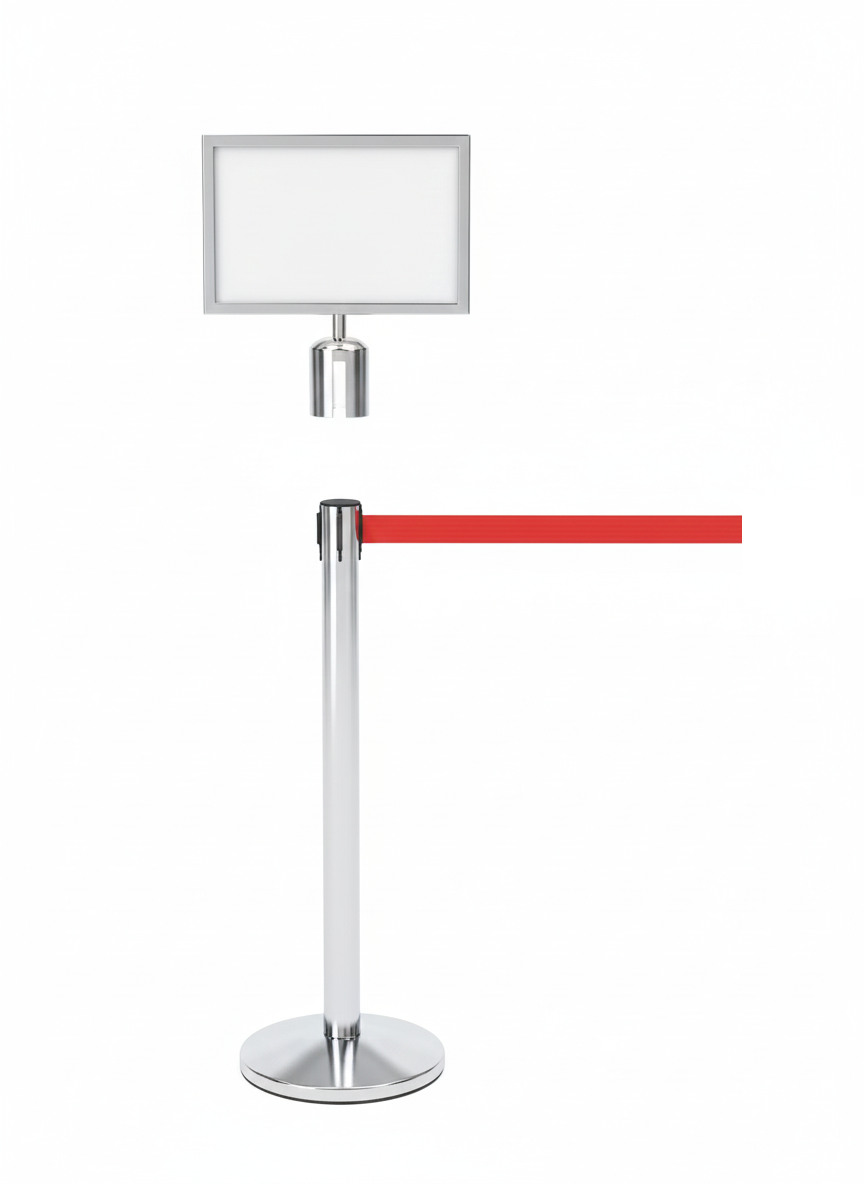 With its clean frame and Landscape orientation, this header is ideal for showcasing A3-size inserts such as “Please Wait Here,” “Line Starts Here,” or custom branding. Perfect for airports, banks, retail stores, events, and hospitality environments.